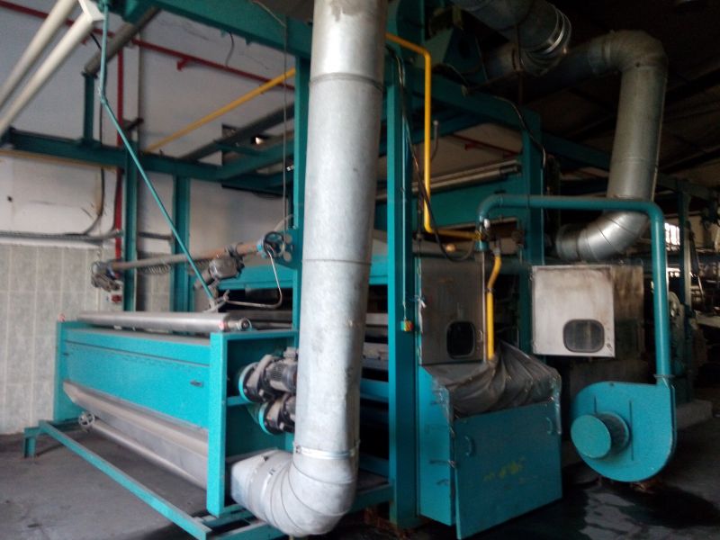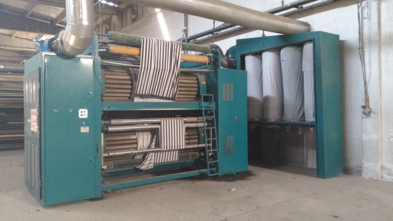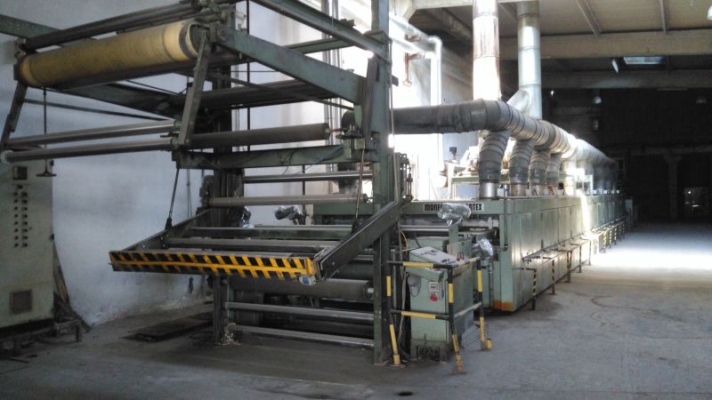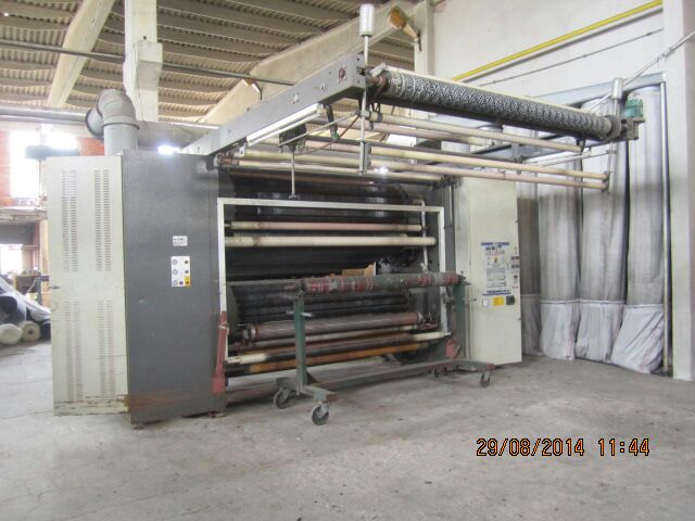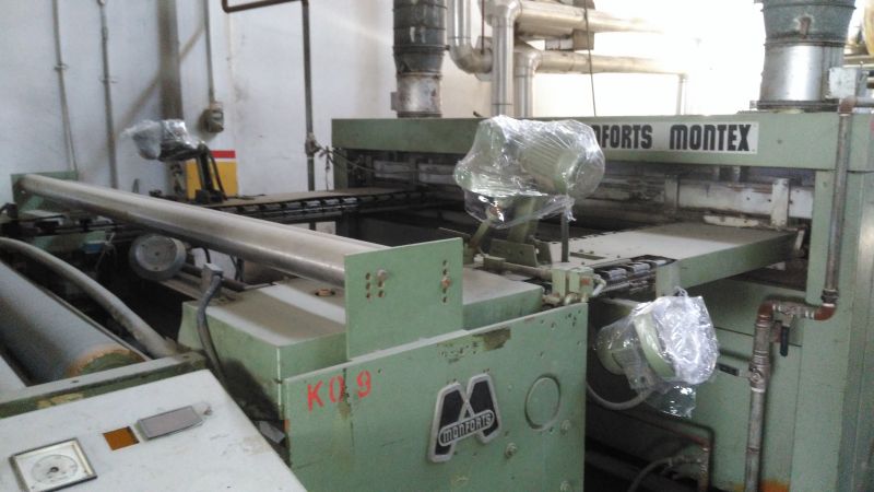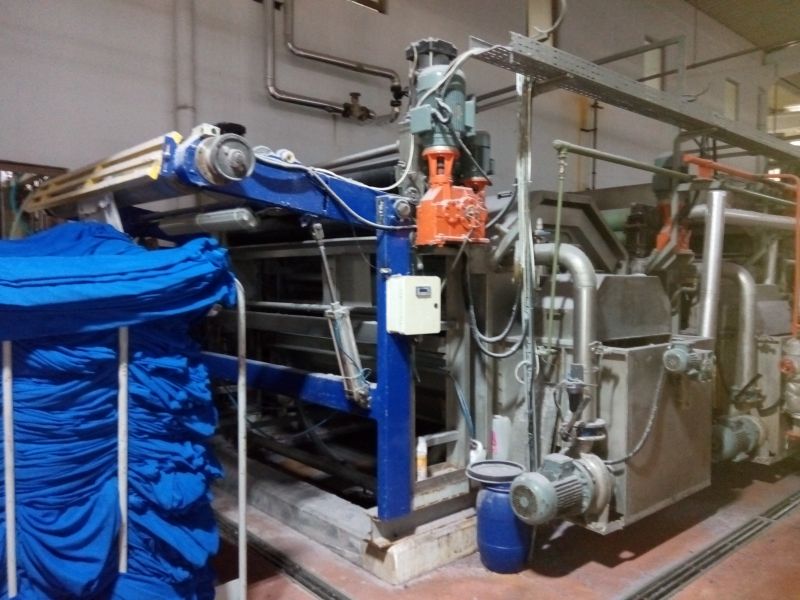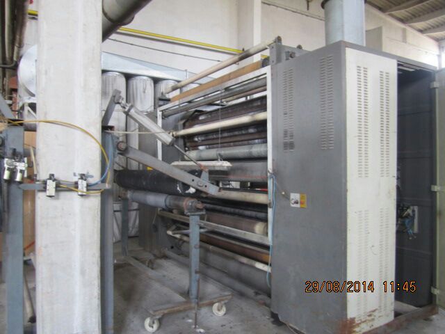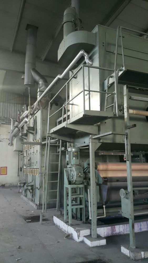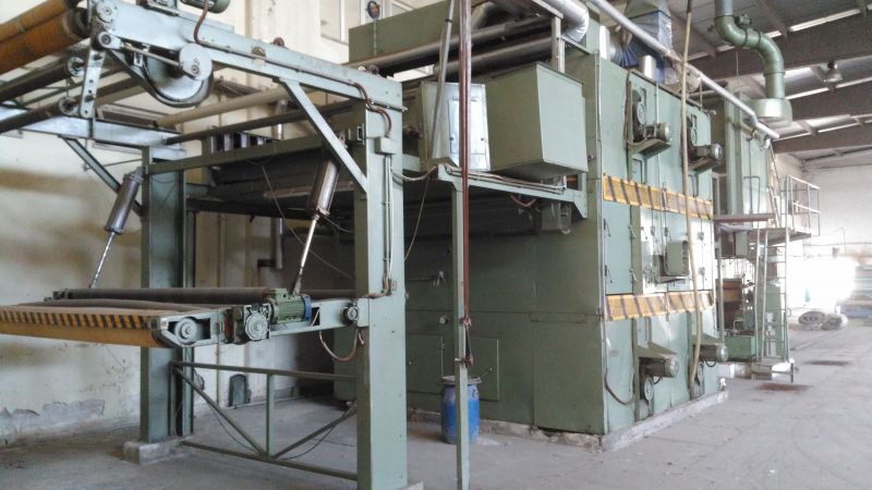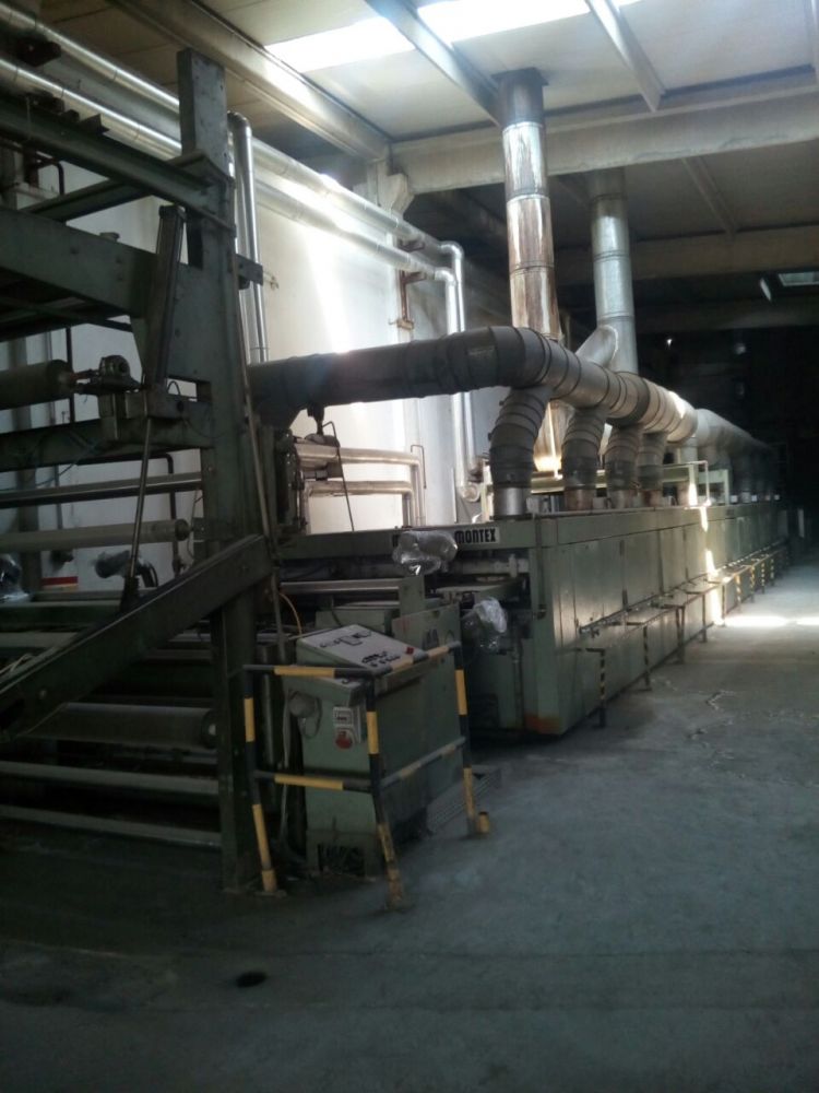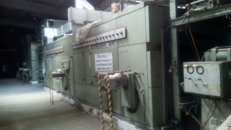 240 cm, girişte küsters boya fuları, elektrikli infrared kurutma, kızgınyağlı, askılı, 2 kabinli, çıkışta soğutma ünitesi, pastal serme ve doka sarma.