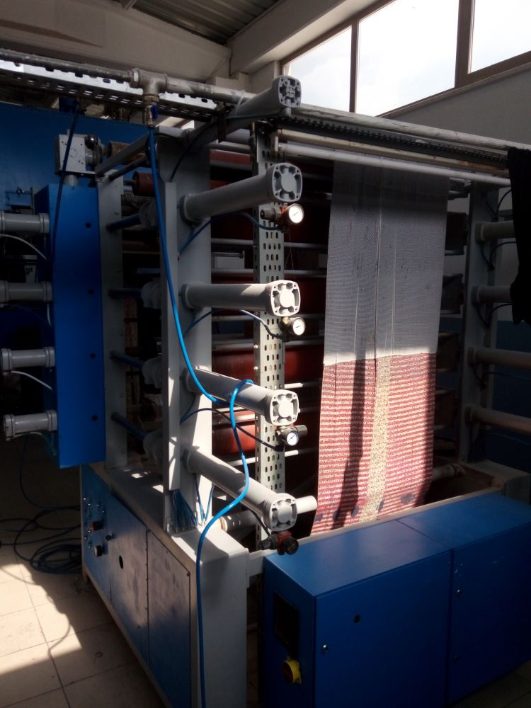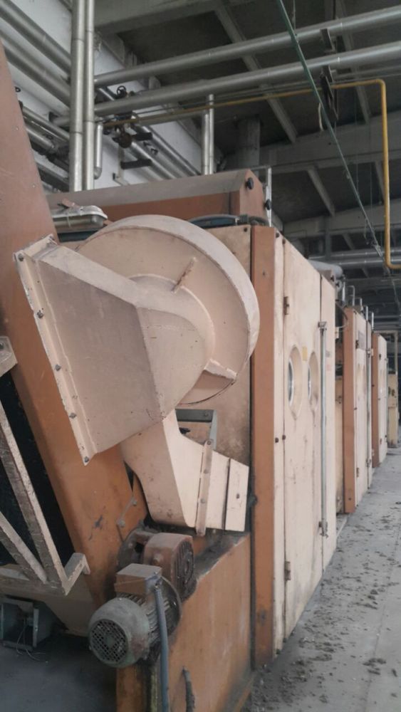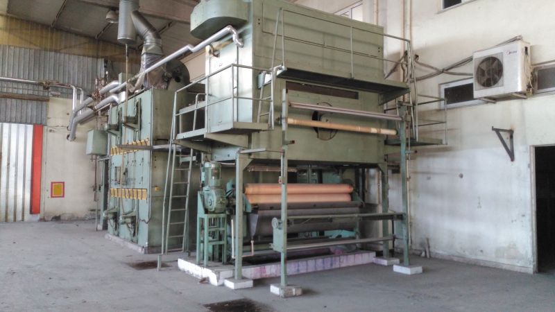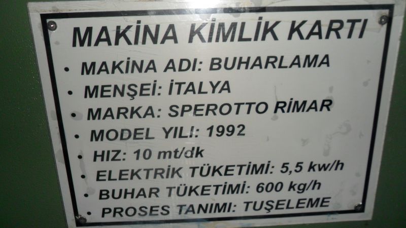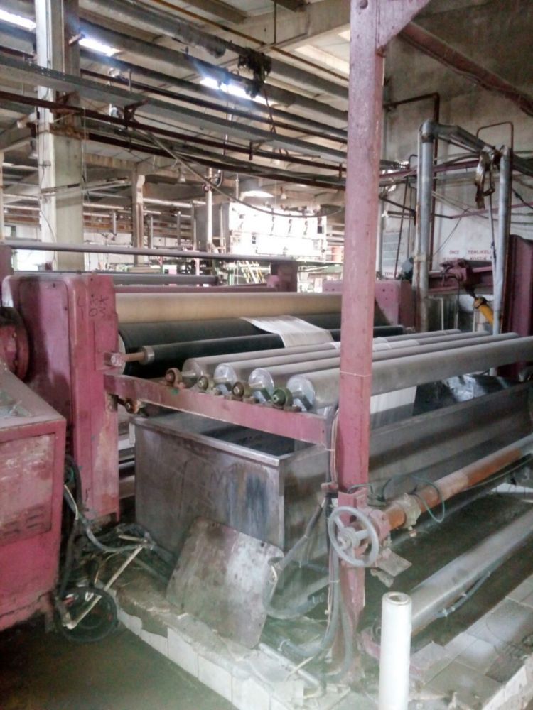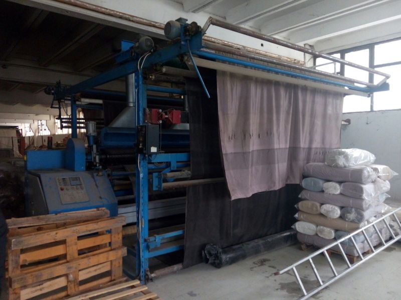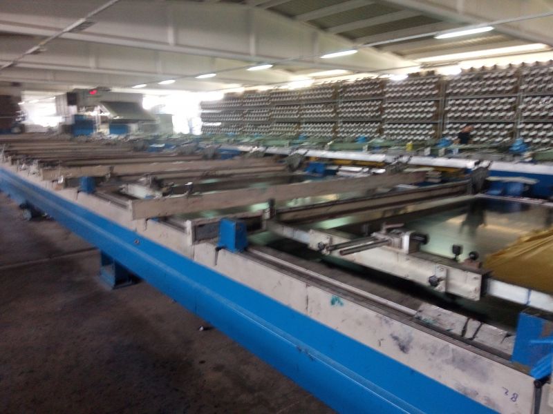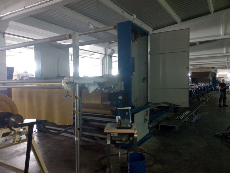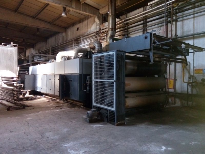 240 cm, girişte küsters boya fuları, elektrikli infrared kurutma, kızgınyağlı, askılı, 2 kabinli, çıkışta soğutma ünitesi, pastal serme ve doka sarma.