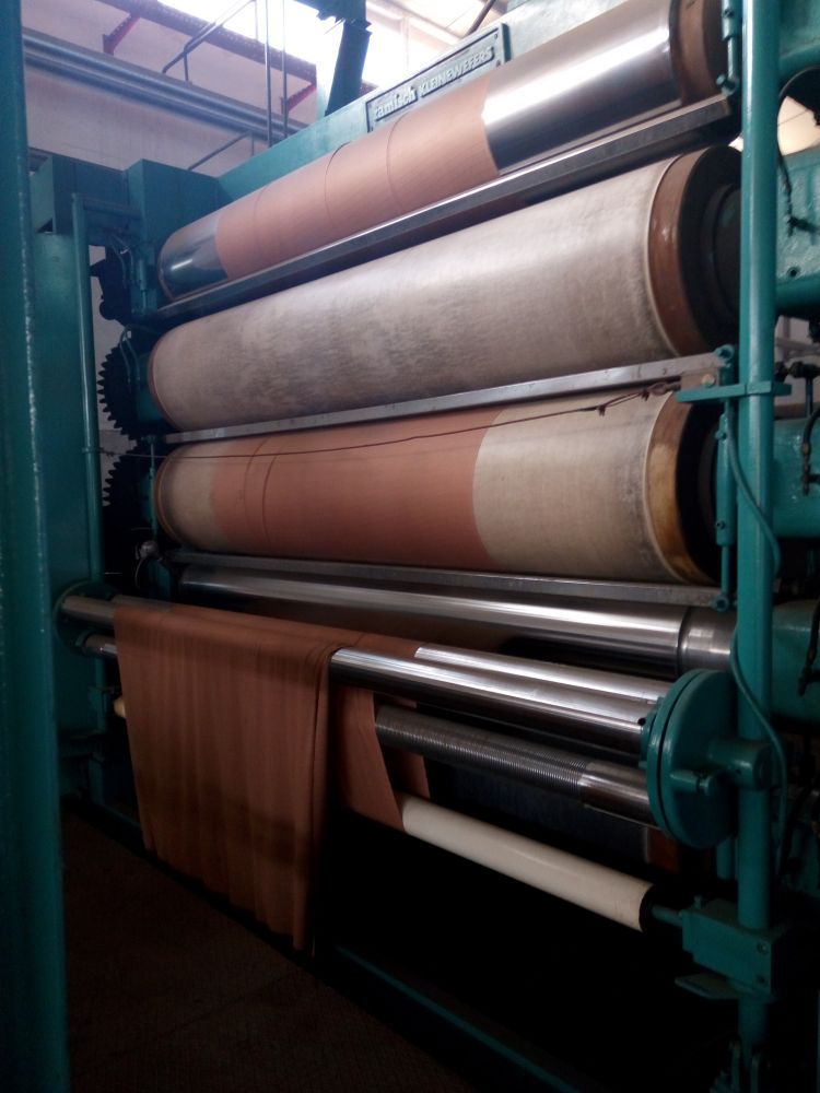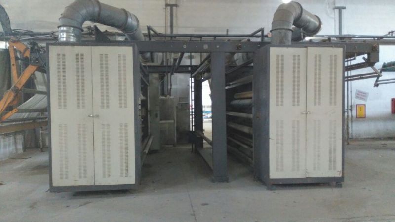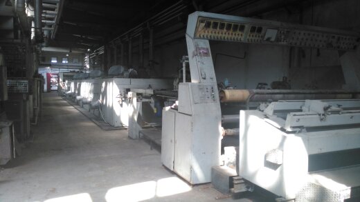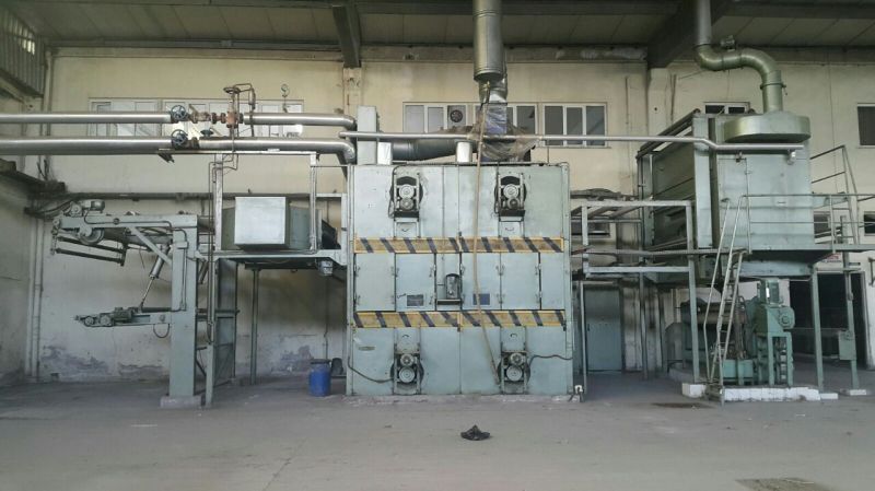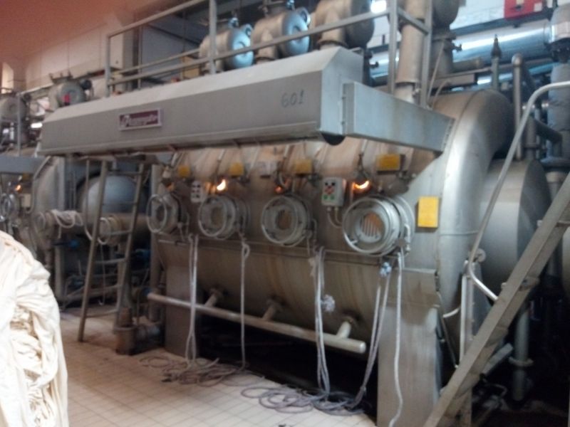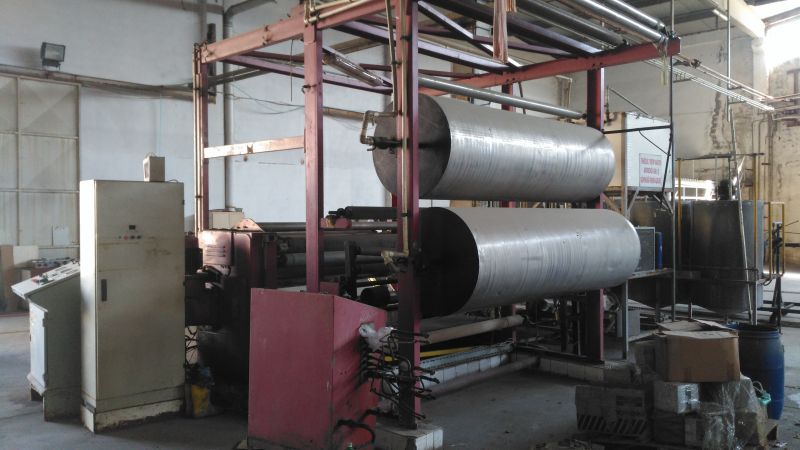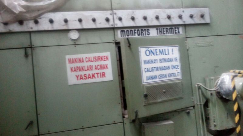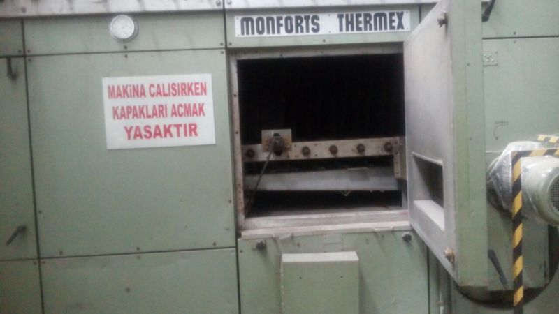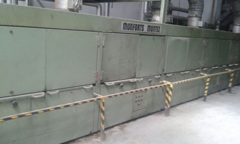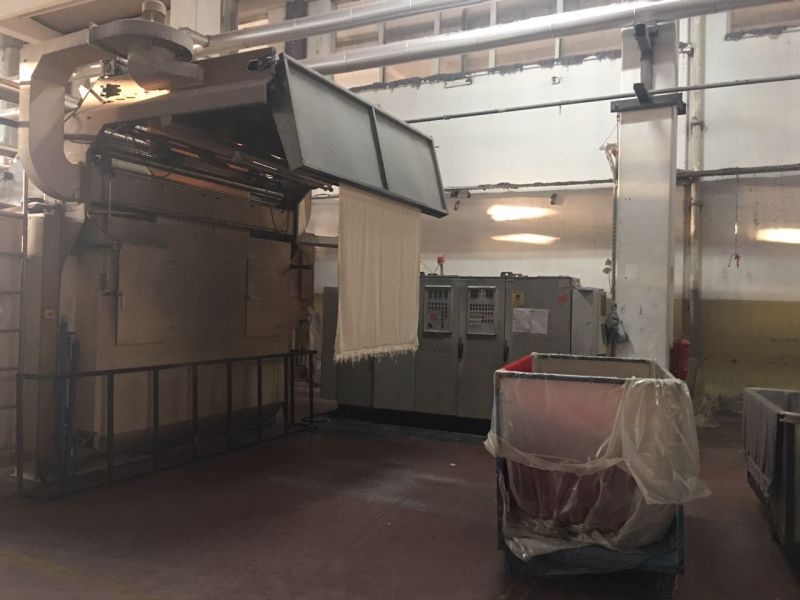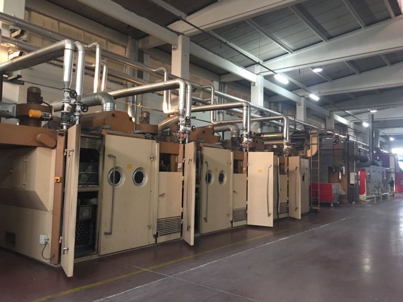 240 cm, girişte küsters boya fuları, elektrikli infrared kurutma, kızgınyağlı, askılı, 2 kabinli, çıkışta soğutma ünitesi, pastal serme ve doka sarma.